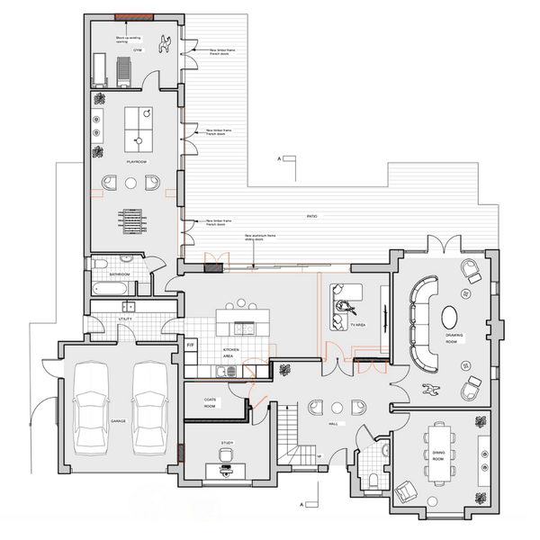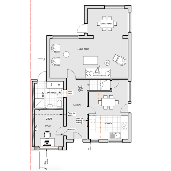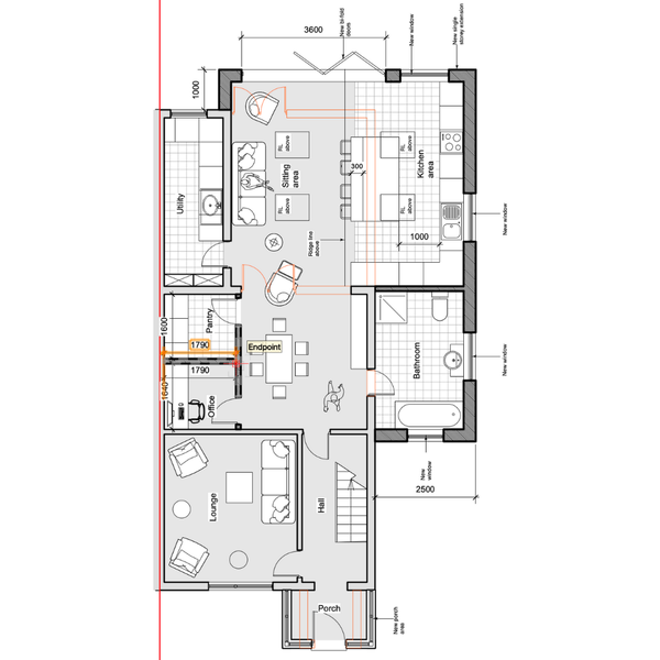 This project involved a single-storey rear extension and a complete internal redesign to create a larger, brighter open-plan kitchen, dining and living space. The new layout includes a utility room, pantry and home office, improving both functionality and everyday flow. Glazing and bi-fold doors were added to maximise natural light and improve access to the garden, making the space feel open, connected and flexible. Ever wondered how a few well-judged design changes can completely transform how a home feels? This Norwich concept redesign replaces a tired layout with a modern, spacious home. The old conservatory was removed and replaced with a light-filled sitting area, while the kitchen, dining and lounge areas were carefully reconfigured to create a smooth, practical flow throughout.