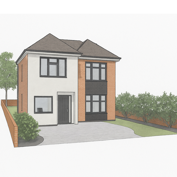 This Hertfordshire project involved the design of a modern front extension to a detached home, aimed at improving kerb appeal and creating a more practical internal layout. The owners wanted a fresh, contemporary look while ensuring the new design blended naturally with the existing property. We provided a complete design service, producing concept designs, planning drawings and a full Building Regulations package. Particular focus was given to proportions, materials and window placement to enhance natural light and give the home a more welcoming presence from the street.