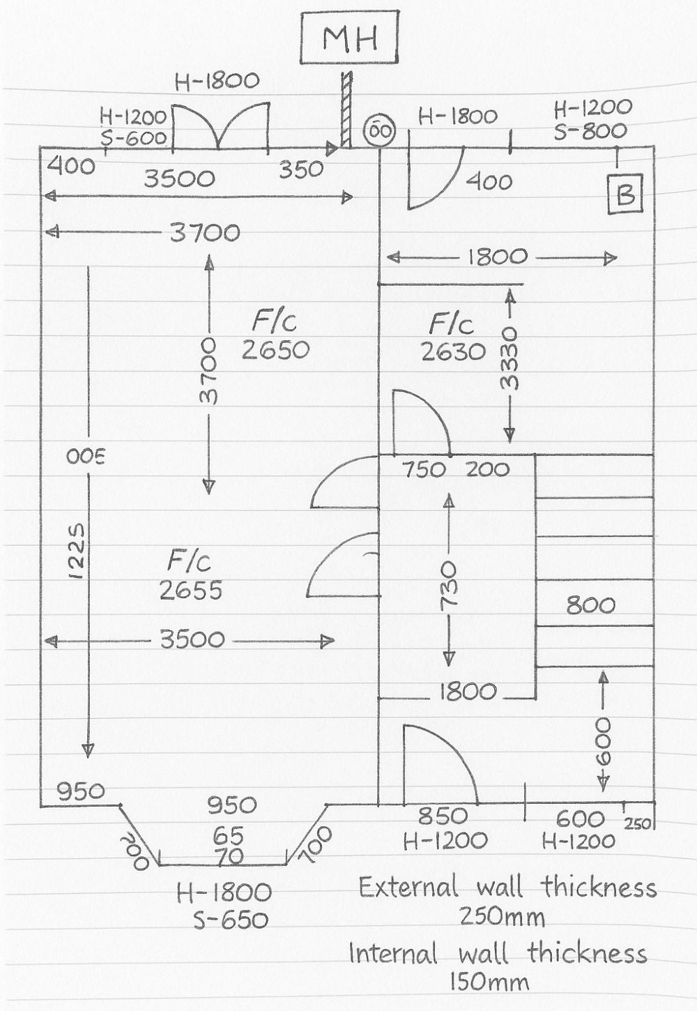 Draw a rough floor plan of the space — don't worry about scale yet. Include: